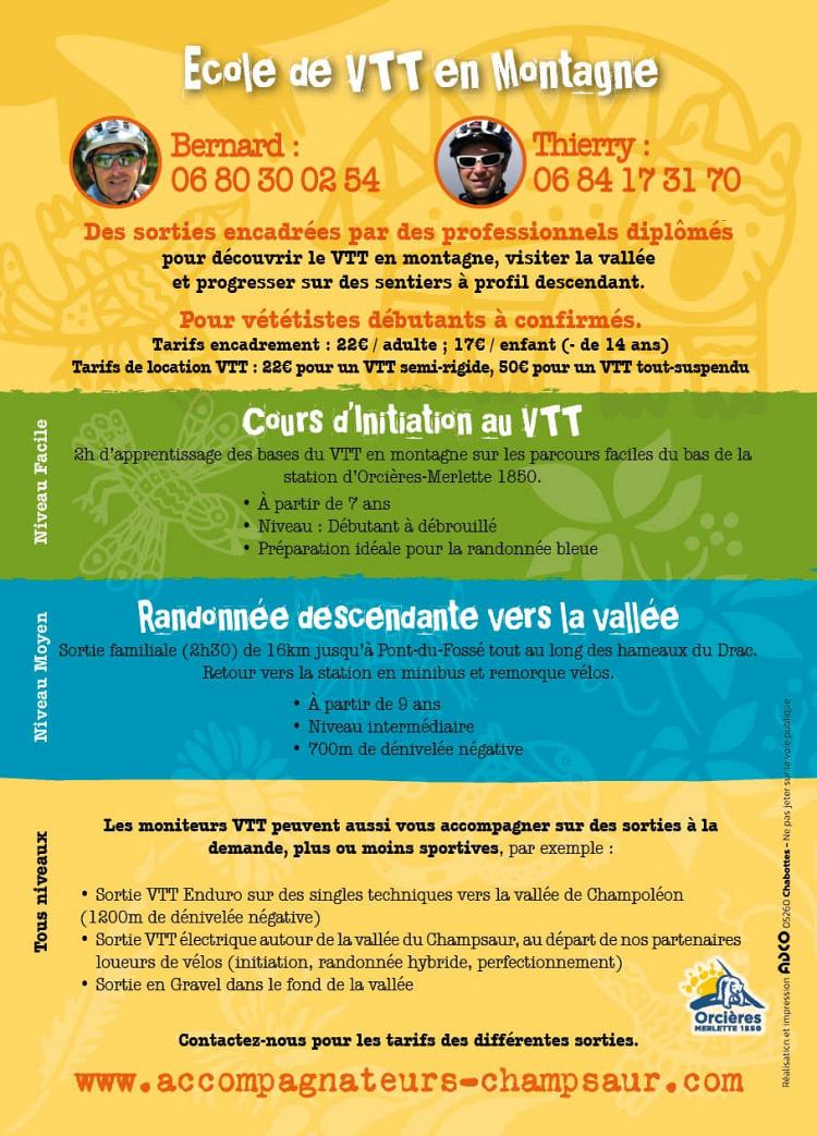 Simple d’utilisation et très agréable, le V.T.T permet de parcourir de grandes distances à travers le milieu montagnard. Nous vous proposons des randonnées de tout niveau, de l’initiation à la descente Enduro.
