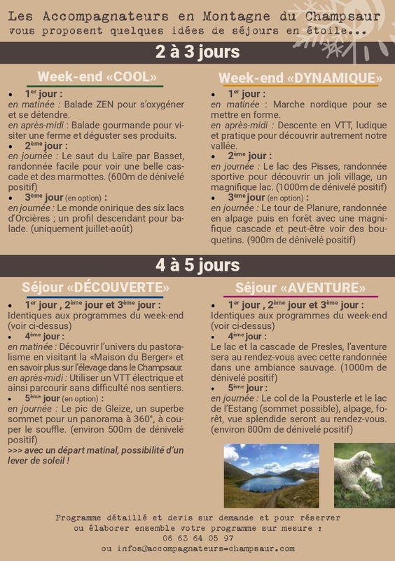 Le temps d’un week-end de 2 à 3 jours, ou d’un séjour de 4 à 5 jours, nous vous accompagnons pour découvrir le Champsaur, et sommes à l’écoute de vos envies.
