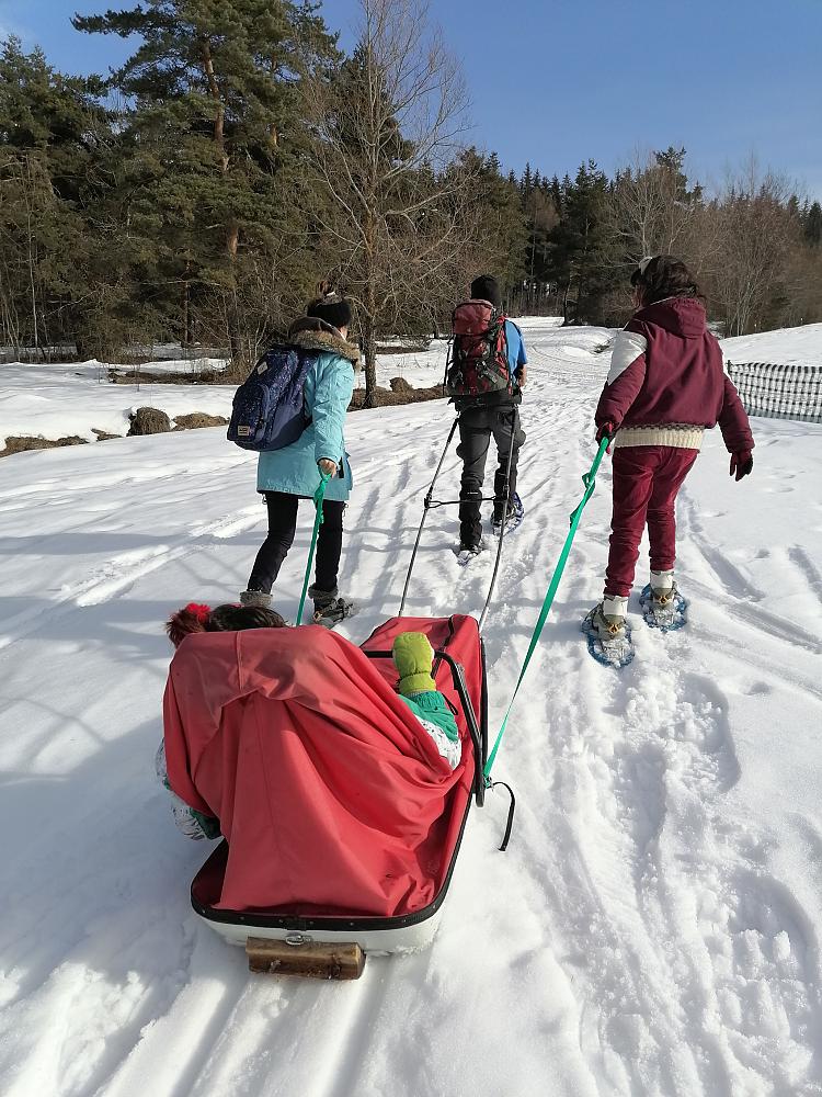 L’hiver, la joëlette peut être remplacée par une pulka (grande luge dans laquelle le passager s’assoit) ou un fauteuil ski... toujours dans un esprit de randonnée : itinéraire sur terrain vallonné adapté, pas d’utilisation de remontées mécaniques, manipulation par des accompagnants (traction, équilibrage...). Mise à disposition du matériel et éventuellement des accompagnants.