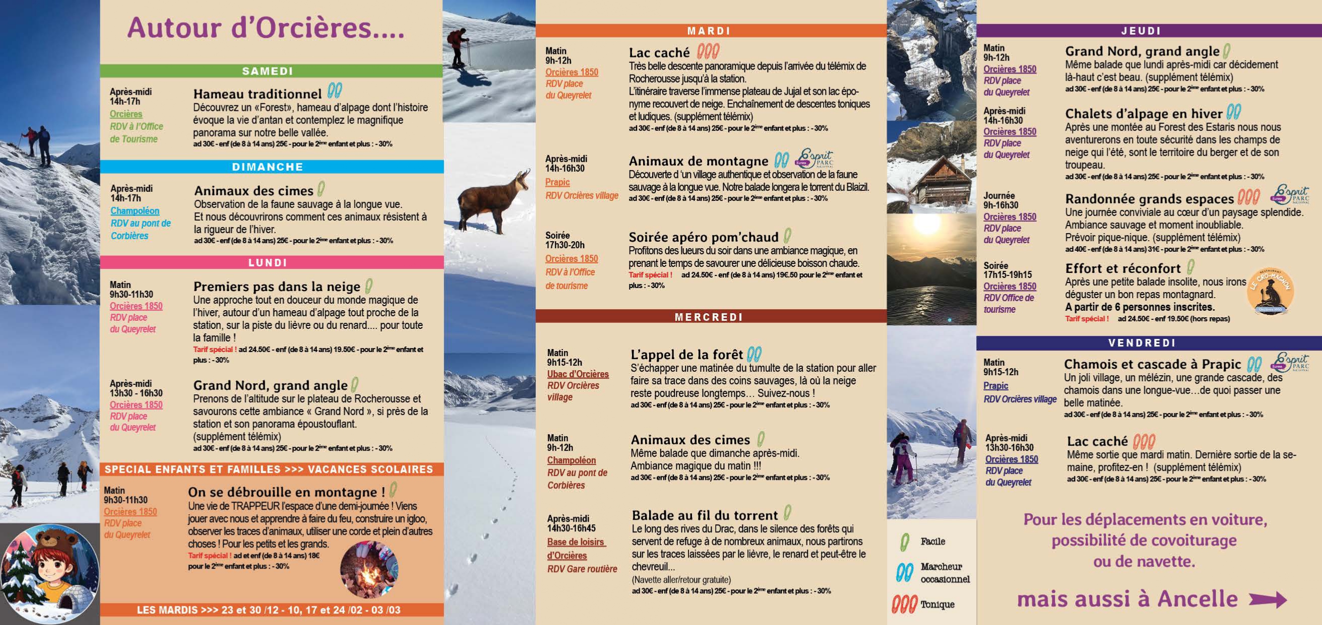 Une approche pédagogique et ludique du milieu montagnard hivernal à travers des sorties à thèmes.